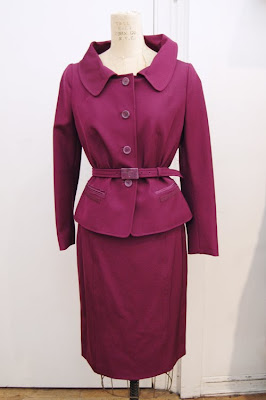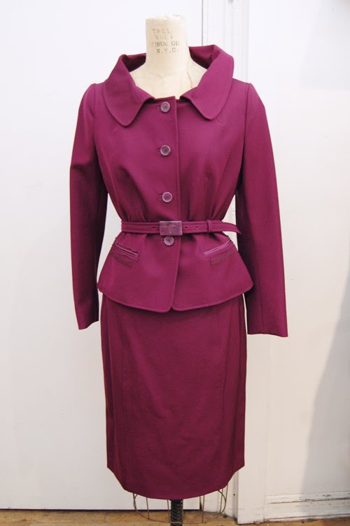 Vintage Guy Laroche pink polka dot tiered & pleated dress / Purple Prada power suit