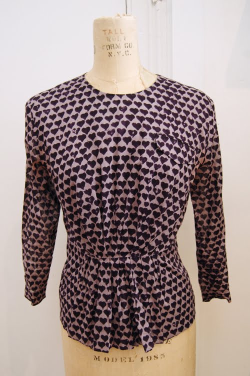 We can't deal with how adorable this tailored heart-printed Dries Van Noten (SOLD) top is! / Beautiful grey vintage eyelet dress
