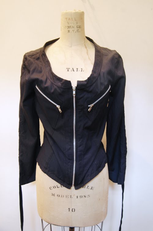 This Jill Stuart zip jacket reminds of of corsets and motorcycles...always a good thing / Meant to be worn oversized and boxy, this Viktor & Rolf blazer combines traditional suiting with silk spilling out of the collar!