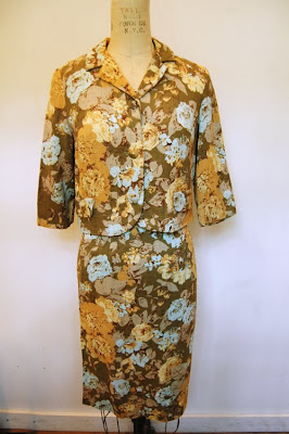 This white lacey floral dress has all of the potential in the world - we're imagining it worn over a bandeau and hotpants, probably with ankle boots as well. Or you can keep it demure with a slip and skinny belt. It's your choice! / Is it Prada? Is it Kenzo? Nope! It's a perfectly vintage floral skirt suit! It still packs a punch when broken up into separates, but we adore the two pieces worn together... (All SOLD but bottom right)