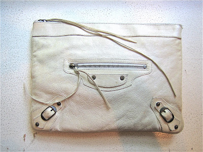 Interesting juxtaposition of pastel suede and nylon in the form of a strappy clutch by Miu Miu