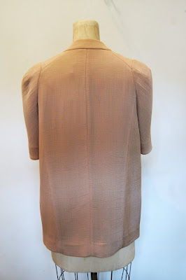 Asymmetrical ikat-inspired coatdress by Marni (SOLD)/ Piped and pinstriped tailored blazer by Chloe (SOLD)