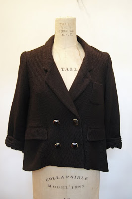 Luca Luca wool jacket with sculptural scalloped collar and bejeweled buttons / Military inspired epaulet cardigan by Tory Burch (SOLD)