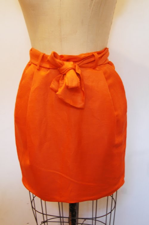 Proenza Schouler is notorious for making chemical colors completely lust-worthy in their clothing, and this electric aqua skirt is a perfect example of such! (SOLD)/ We've never felt like wearing orange more than when we saw this brilliant Yigal Azrouel paperbag-waist skirt! Now considering adding 'pumpkin' to our raster of fall must-have colors