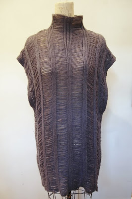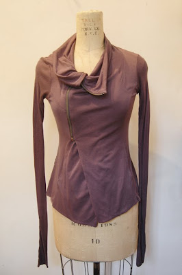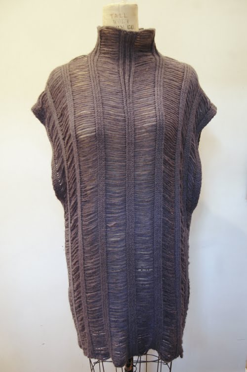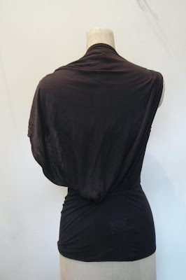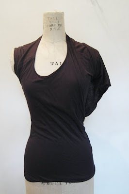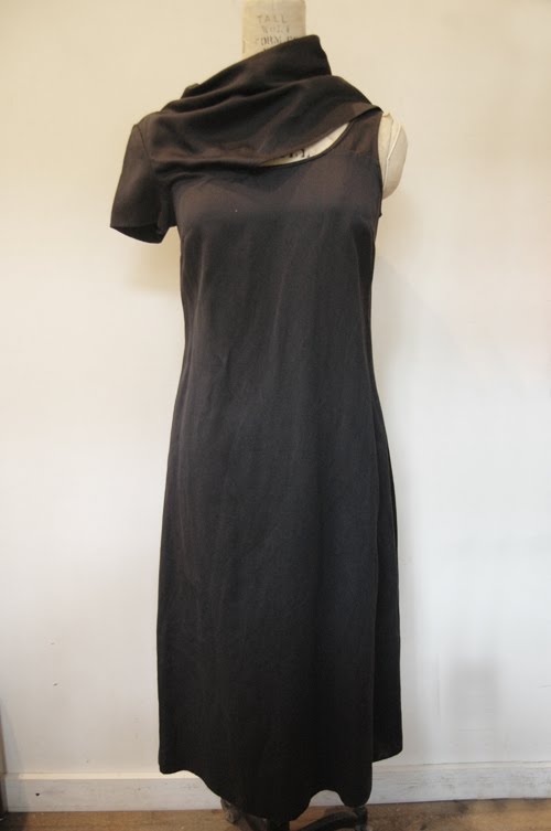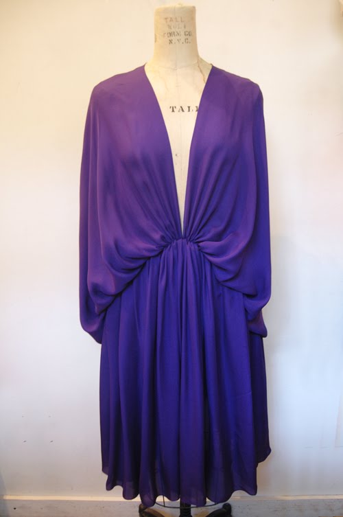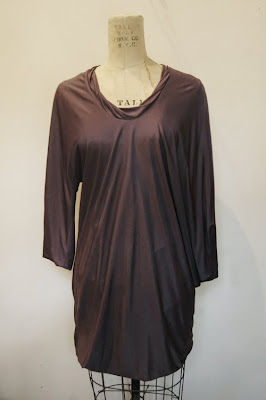 For those who value subtle asymmetry, we have a charcoal Dries Van Noten dress with a wrapped neckline and a purple-gray Yigal Azrouel dress with one batwinged zleeve.