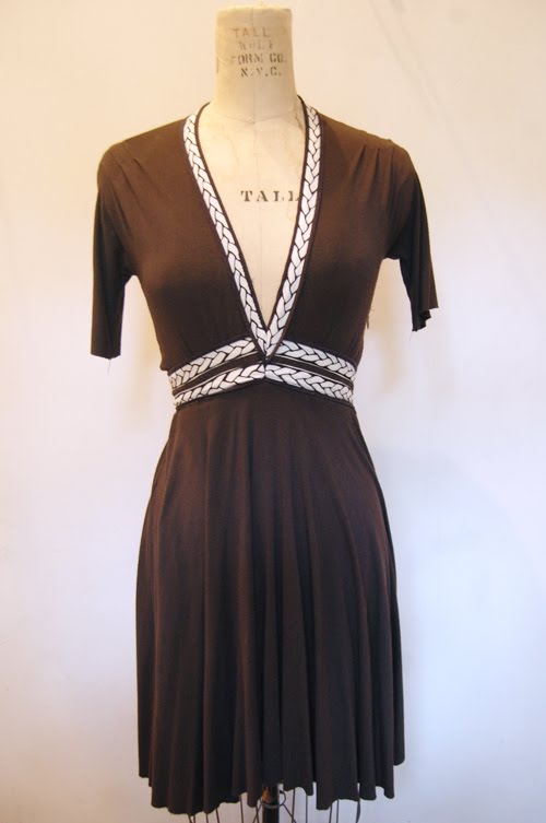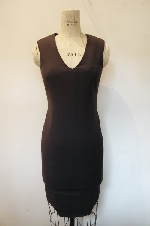A season-appropriate autumnal brown v-neck by Vena Cava (SOLD) / Tailored shirtdress by Proenza Schouler (we have size 6 & 10)