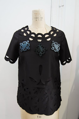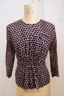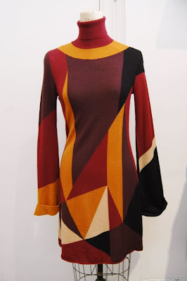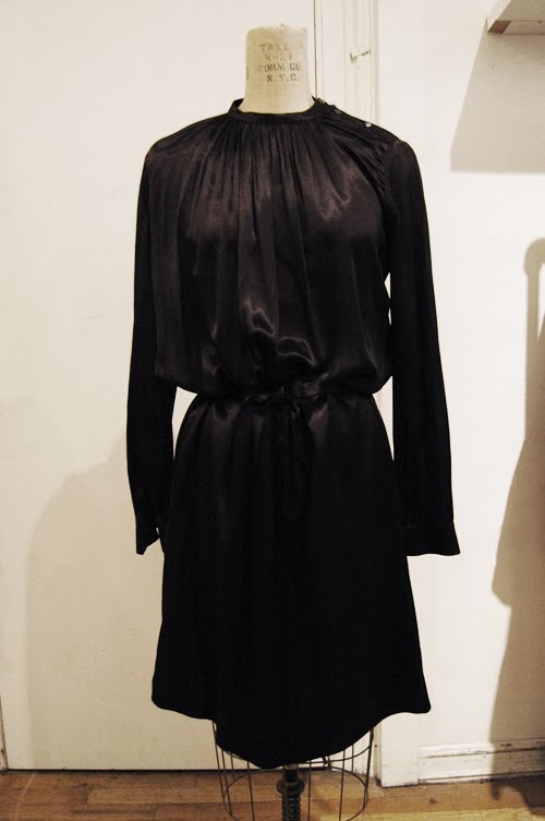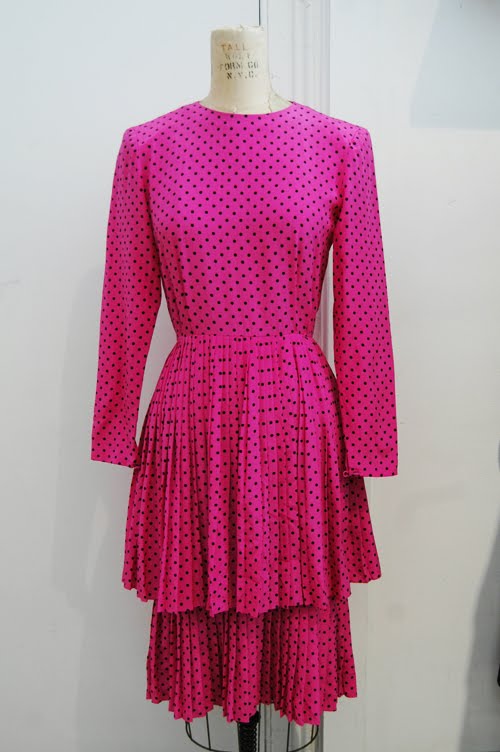 Dries Van Noten dress to the left has a remarkable amount of delicate pleating around the neckline leading into a sleek sleeve. The dress can be belted around the waist, or worn lower at the hips. The