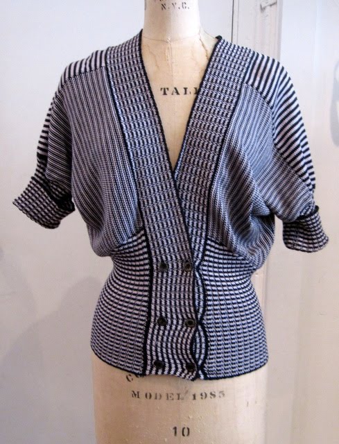 Crocheted Bolero(SOLD)/Batwing Pink and Black Striped Cardigan