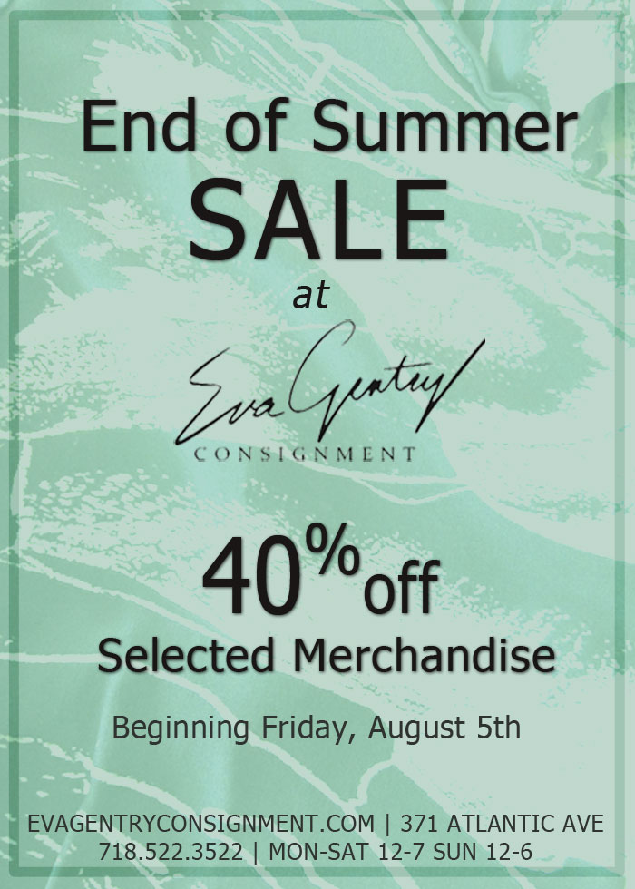 All unsold Eva Gentry Consignment merchandise will be donated to CAMBA's women's rehabilitation and homeless shelters located in Brooklyn.