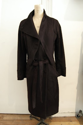 We have a dramatic oversized technicolor plaid shirtdress by Henrik Vibskov (above), and a shiny hybrid of a puffer and mackintosh coat by Agnes B (below) SOLD